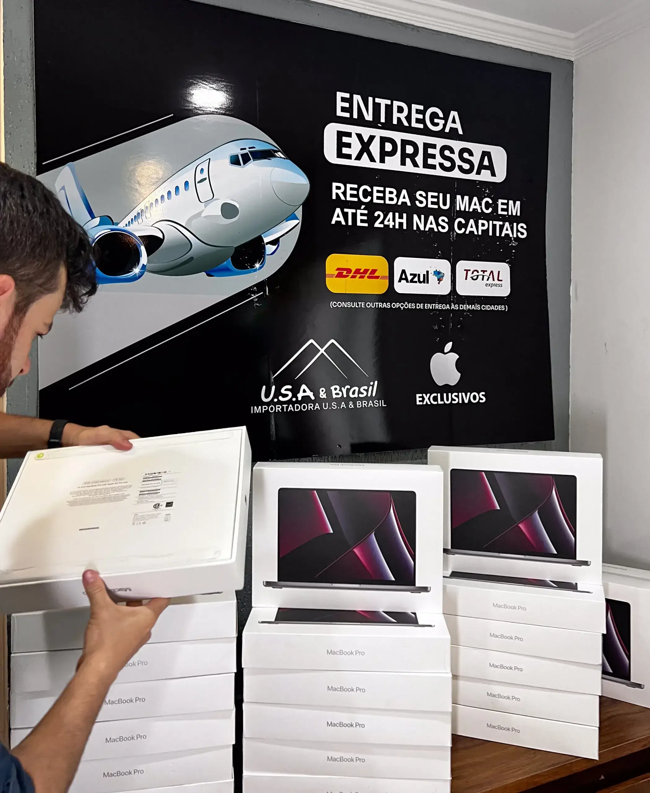 Você precisa de máquinas de elite (MacBook Pro, Mac Studio, iPad Pro) prontas pra rodar hoje — não “quando a transportadora resolver entregar, e se entregar”.